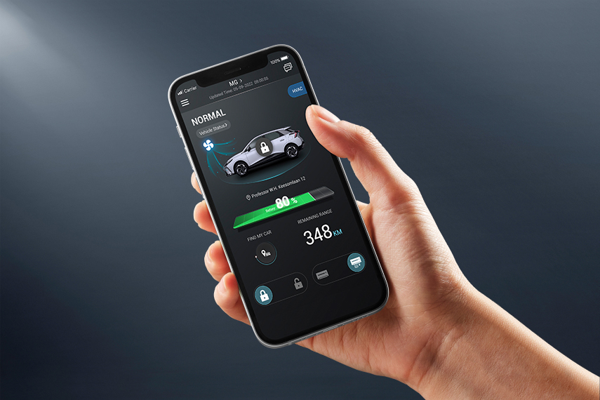 Η εφαρμογή MG iSMART σας βοηθά να εντοπίσετε γρήγορα τη θέση του αυτοκινήτου σας και να τσεκάρετε ότι είναι έτοιμο, με ένα απλό άγγιγμα. Επιπλέον, μπορείτε να χρησιμοποιήσετε τη λειτουργία του εξ αποστάσεως χειρισμού και να ρυθμίσετε τον κλιματισμό στην επιθυμητή θερμοκρασία, πριν ακόμα βρεθείτε στο εσωτερικό του.