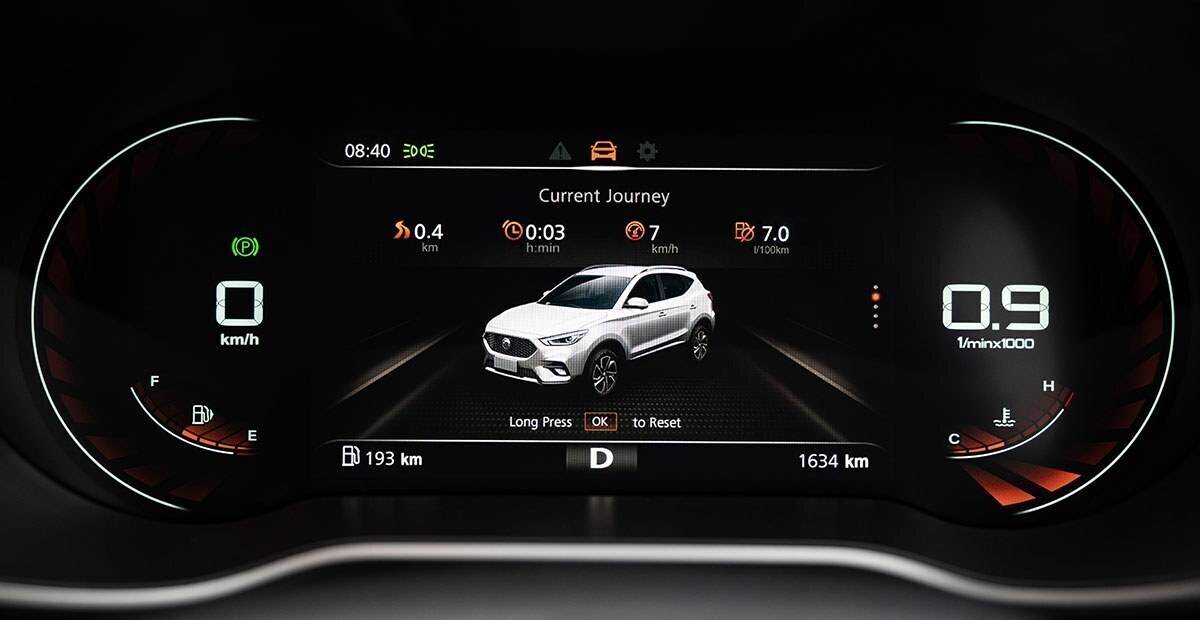 Το ταμπλό του MG ZS Luxury έχει σχεδιαστεί με στυλ και απλότητα και διαθέτει μια εντυπωσιακή, πλήρως ψηφιακή οθόνη πληροφοριών